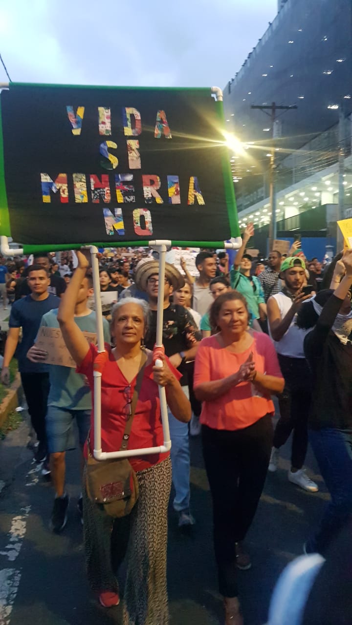 “Las mujeres estamos nuevamente en la calle defendiendo el territorio, la nacionalidad, la patria, una patria mancillada, cedida, vendida a un emporio internacional minero”